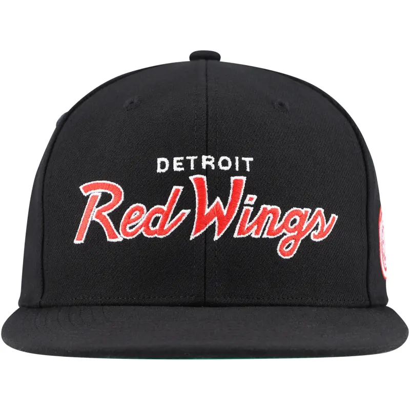 Men’s Mitchell & Ness Black Detroit Red Wings Core Team Script 2.0 Snapback Hat