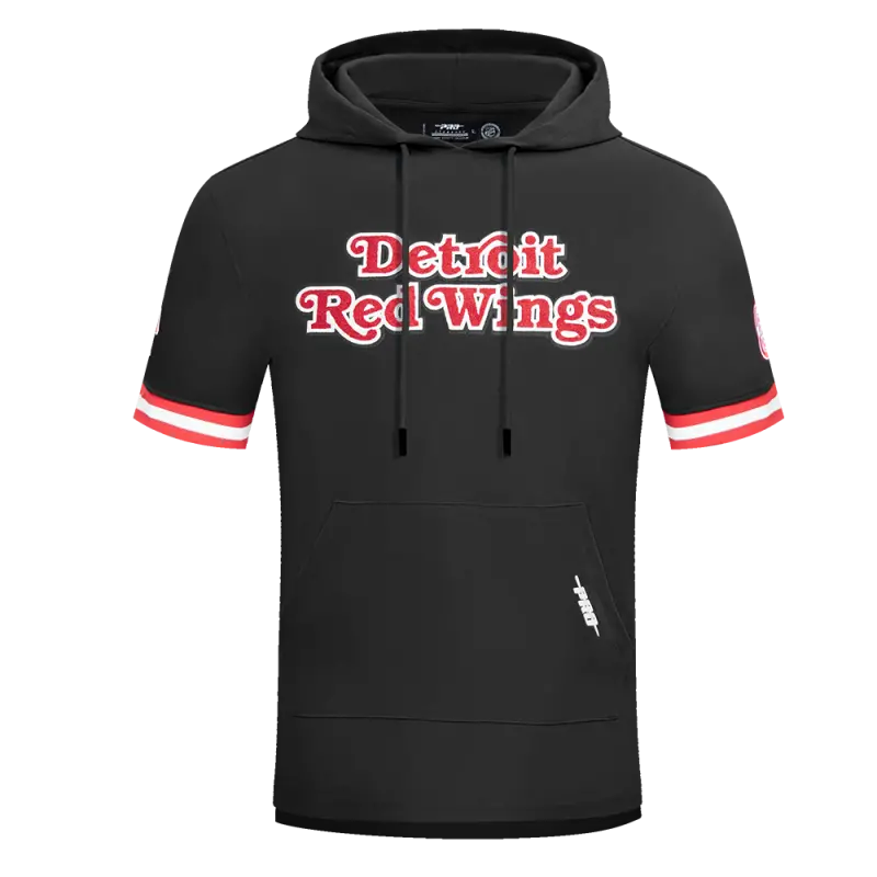 NHL DETROIT RED WINGS CLASSIC CHENILLE MEN’S DOUBLE KNIT SHORT SLEEVE PULLOVER HOODIE (BLACK\/RED)