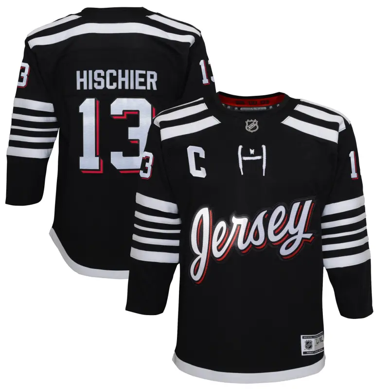 Youth Nico Hischier Black New Jersey Devils 2021/22 Alternate Replica Player Jersey