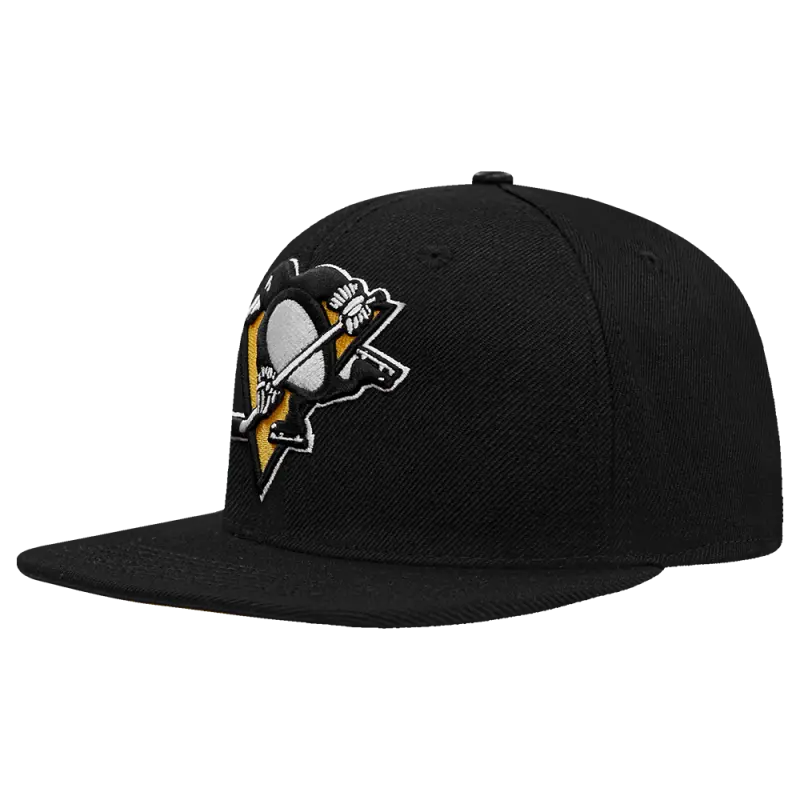 NHL PITTSBURGH PENGUINS CLASSIC LOGO WOOL UNISEX SNAPBACK HAT (BLACK)