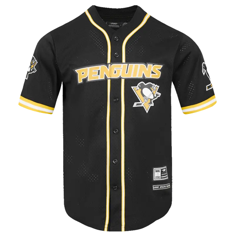 NHL PITTSBURGH PENGUINS CLASSIC MEN’S MESH BUTTON DOWN JERSEY (BLACK\/YELLOW)