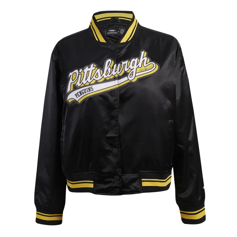 NHL PITTSBURGH PENGUINS SCRIPT TAIL WOMEN’S SATIN JACKET (BLACK\/YELLOW)