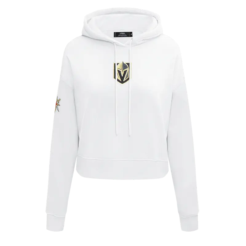 NHL VEGAS GOLDEN KNIGHTS CLASSIC WOMEN’S FLEECE CROPPED PULLOVER HOODIE (WHITE)