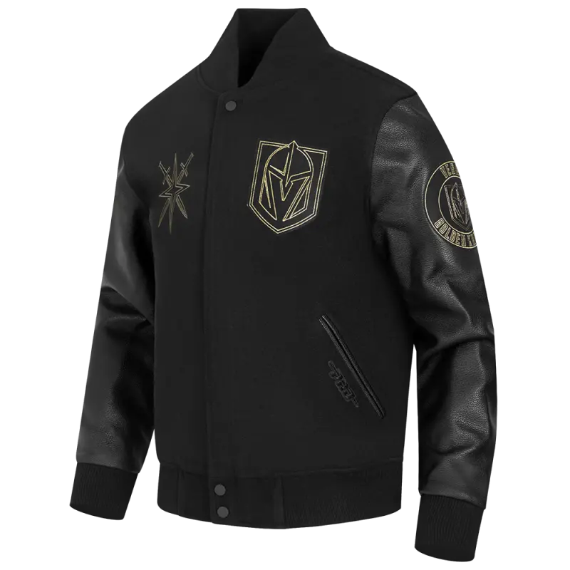 NHL VEGAS GOLDEN KNIGHTS BLACK \u0026 GOLD MEN’S WOOL VARSITY JACKET (BLACK)