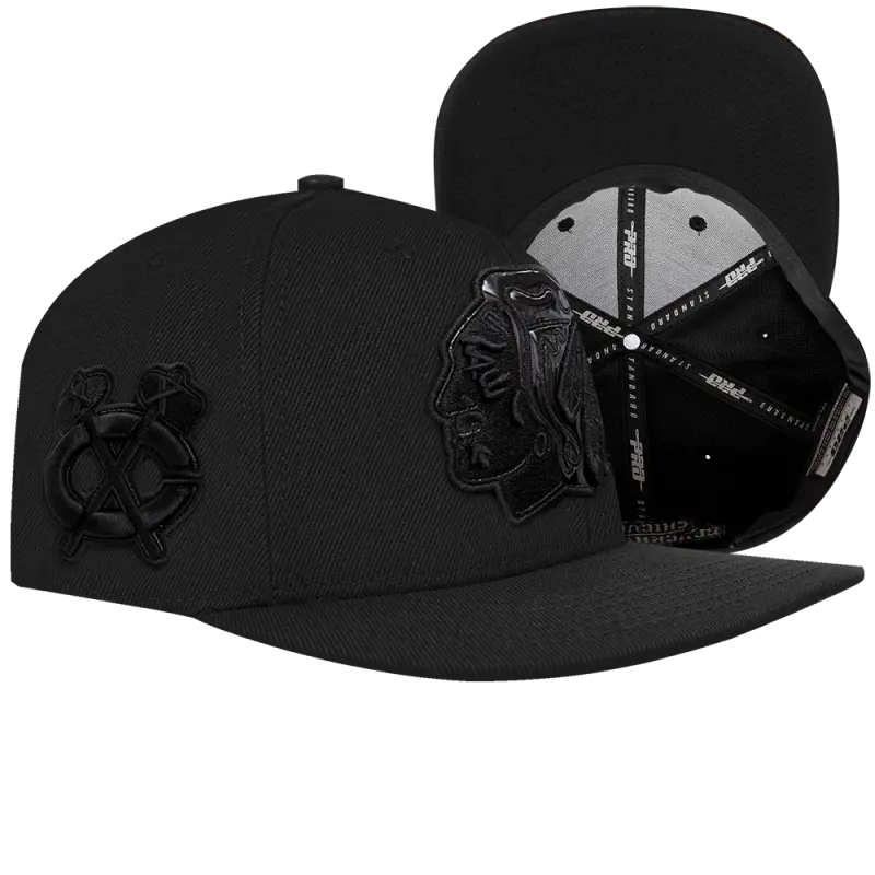 NHL CHICAGO BLACKHAWKS CLASSIC 3BK WOOL UNISEX SNAPBACK HAT (TRIPLE BLACK)