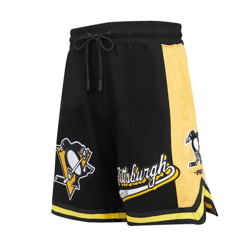 NHL PITTSBURGH PENGUINS SCRIPT TAIL MEN’S DOUBLE KNIT 2.0 SHORT (BLACK\/YELLOW)