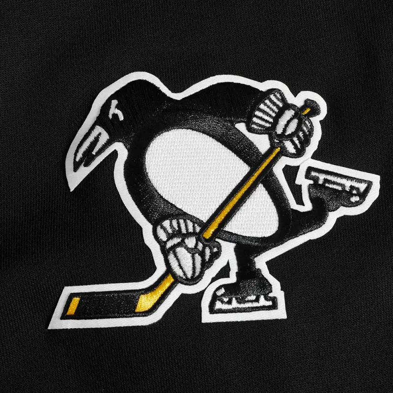 NHL PITTSBURGH PENGUINS SCRIPT TAIL MEN’S RIB FLEECE PULLOVER HOODIE (BLACK\/YELLOW)