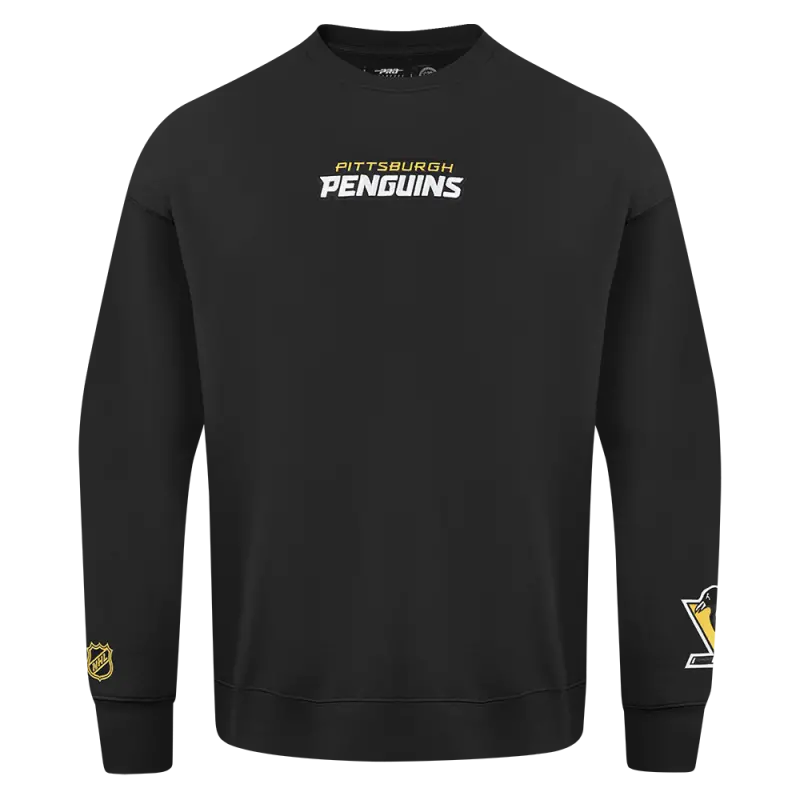 NHL PITTSBURGH PENGUINS WINGSPAN MEN’S DROP SHOULDER FLEECE CREWNECK (BLACK)
